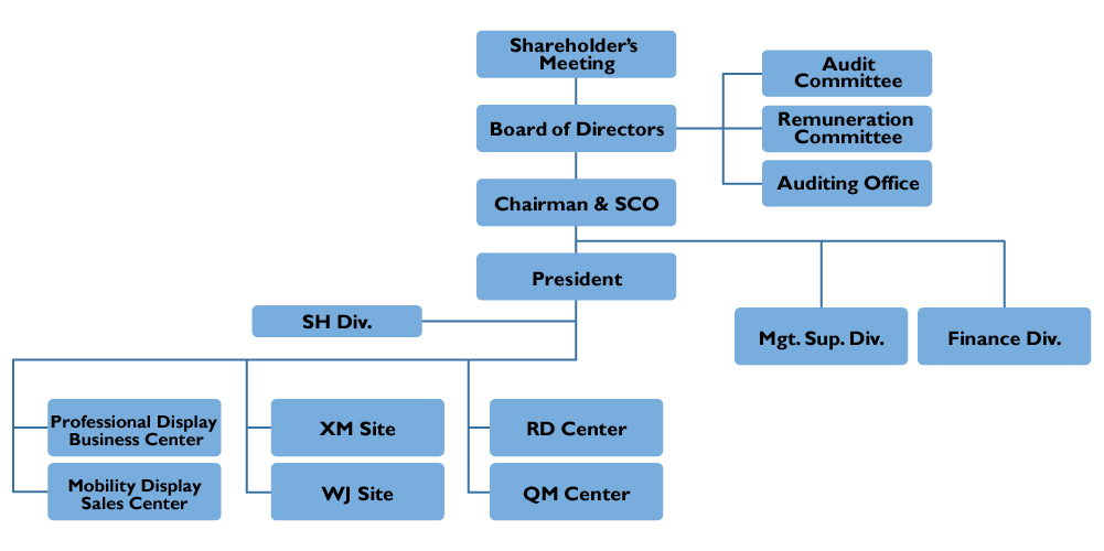 | Professional Display Business Center | In charge of product development and production with regards to integrated service, while actively expanding clients, meeting the order demands of clients and being committed to the revenue and profit targets set by the Company. |
